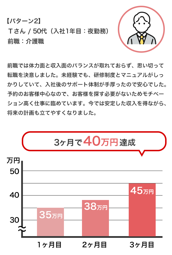 さらに、入社後慣れて頂いた頃に「固定給」から「業績給」へ変更することも可能です。